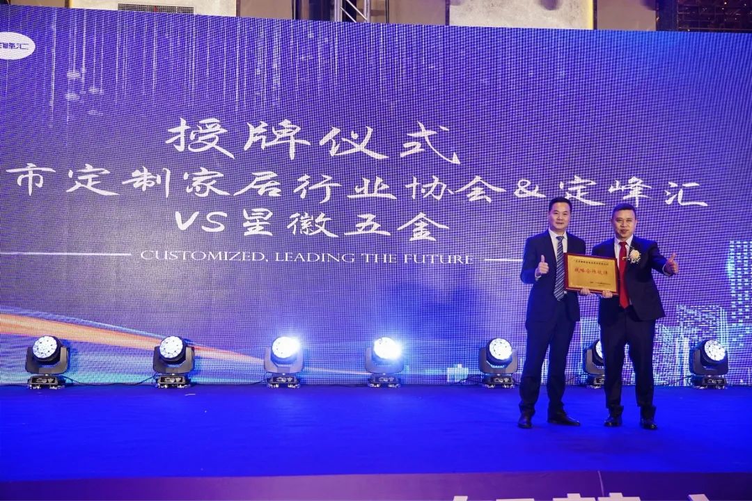 星徽精密長期與廣州市定制家居協會會長單位進行戰略合作,得到了會長單位的高度認可和贊譽!在此次年會上,定峰匯&廣州市定制家居協會和廣東星徽精密制造股份有限公司進行了正式簽約和授牌。