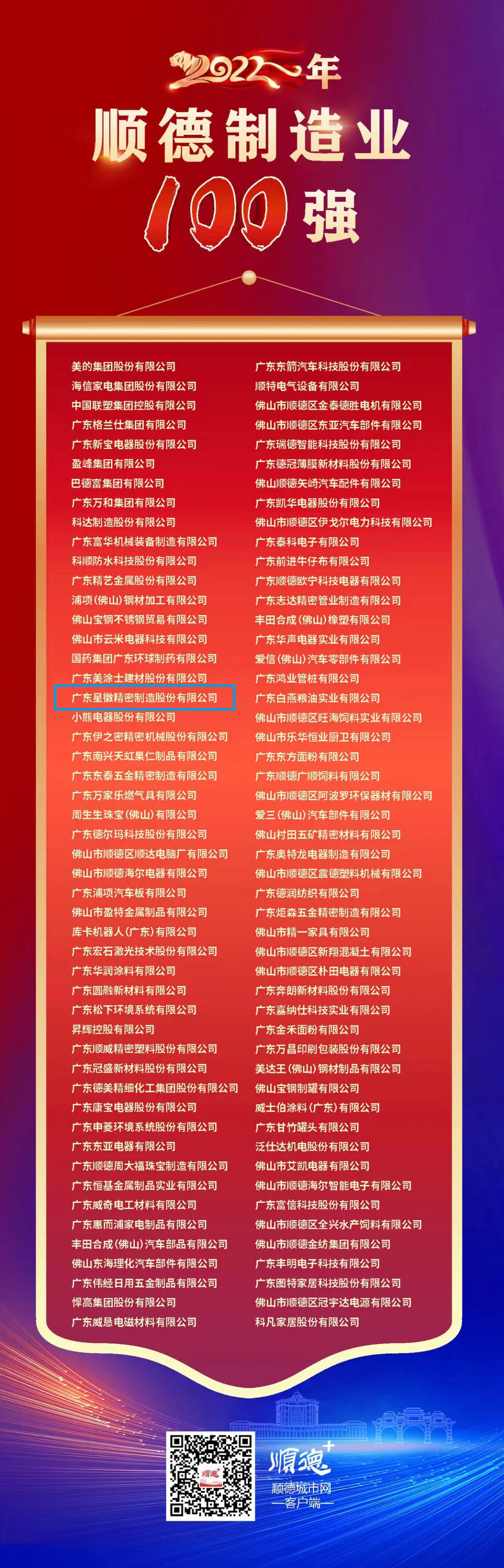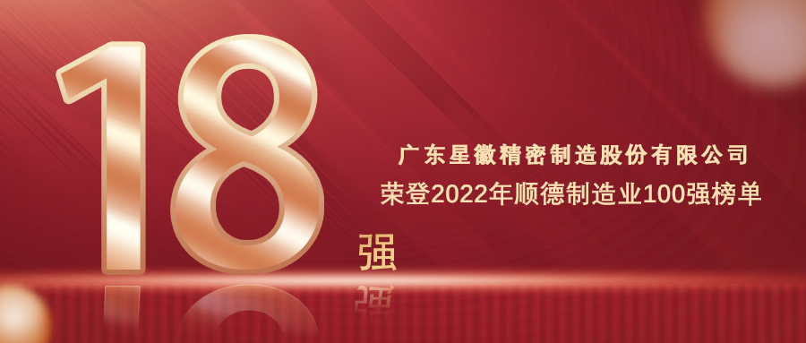 9月25日,“深耕順德,共享未來”順德區制造業百強發布會暨重大項目簽約活動在順德舉行。活動上,順德區首次發布了“2022年順德制造業100強”榜單并為代表企業授牌。憑借強勁的綜合實力和品牌影響力,星徽精密進入前20強,位列百強榜第十八,奪得家居五金行業桂冠。